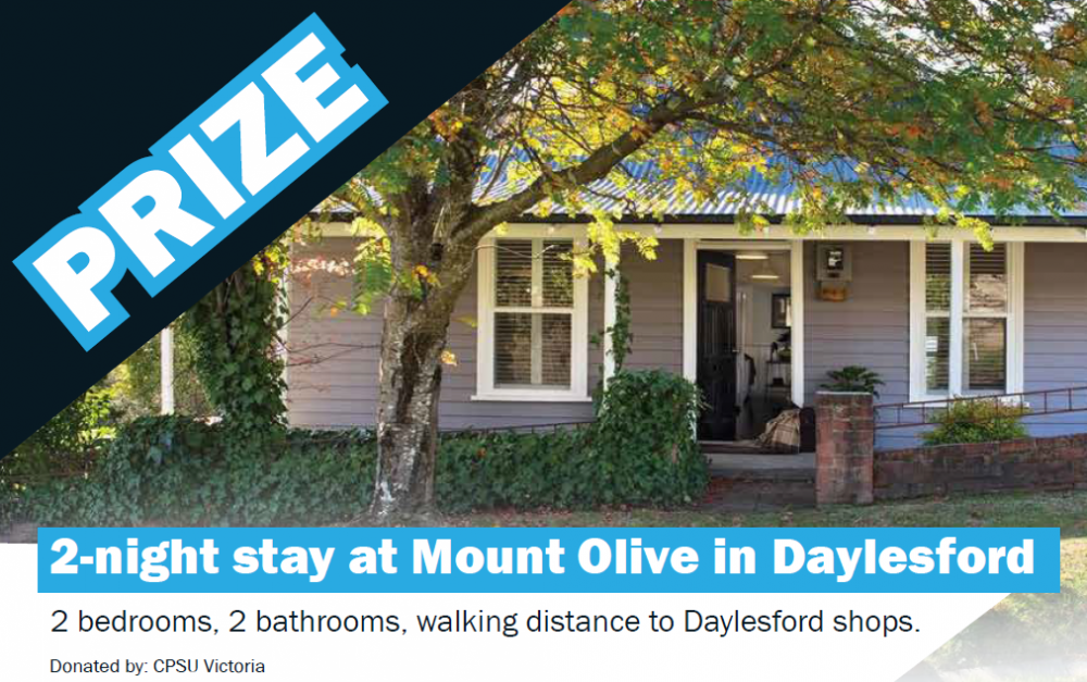 Viola Leuzzi is our winner. Viola and the new member she signed up, Alexa Carmody, will each receive a 2-night stay at Mt Olive in Daylesford. Our Sign Up A Sister campaign for International Women's Day 2020 was a great success, with over 70 new members recruited. We thank all members who entered this competition. Having new members is good for all of us. It gives Victorian Public Sector employees improved bargaining power. It gives your work colleagues the added security of 24 hour a day industrial protection. Keep an eye out for our future recruitment competitions to win great prizes! In the meantime, members will continue to receive Woolworth vouchers for every new member they recruit to CPSU.